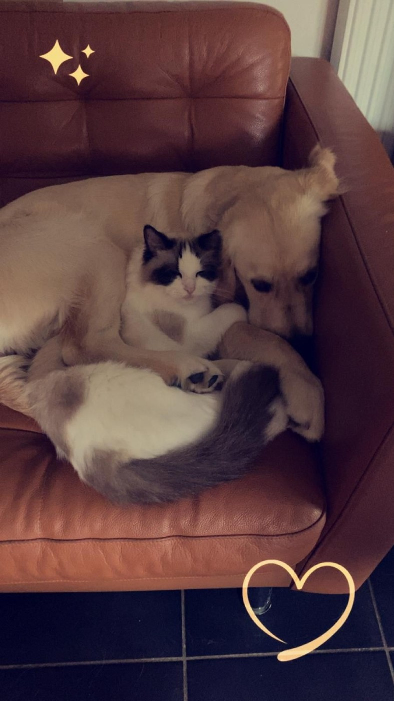 CHAT ET GOLDEN RETRIEVER Question récurrente: j'ai un chat, est ce possible d'adopter un chiot golden ? Oui ! La moitié des famil...